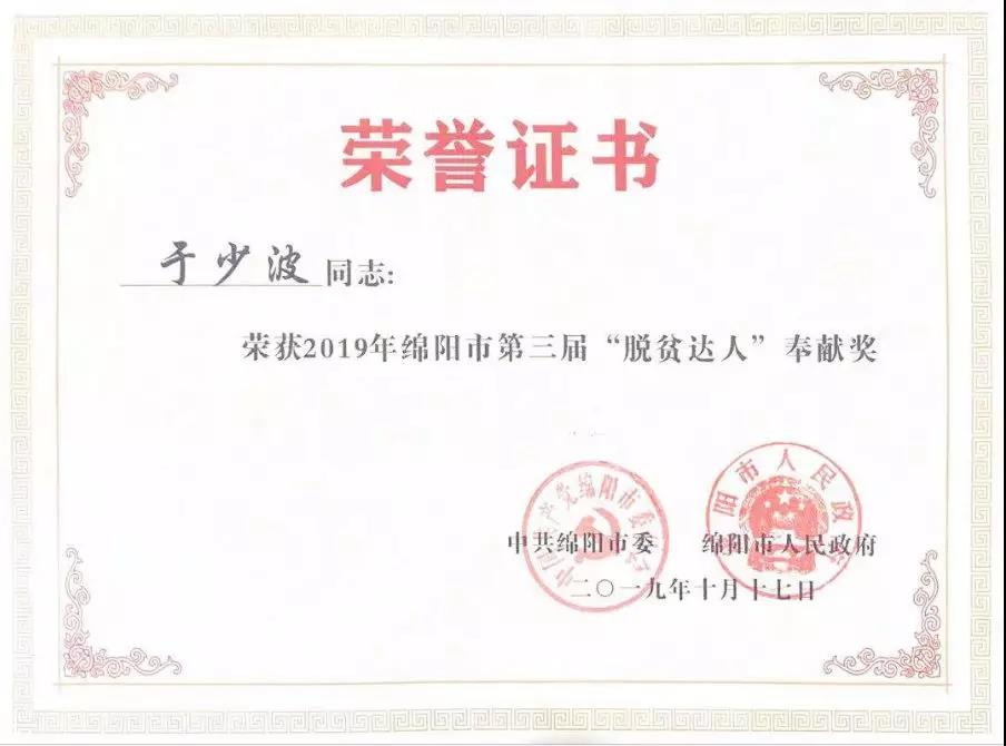 東材科技黨委書記、董事長于少波榮獲“脫貧達人”奉獻獎